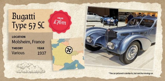 Cars worth millions would regularly go missing. Most would turn up again, but some would remain lost, including the fabled Bugatti Type 57 SC, also known as “La Voiture Noire” or “The Black Car”, which some have valued at over £70m, should it ever surface