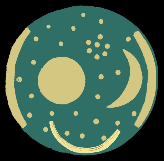 The image shows stars, a crescent moon and a sun or full moon. Scientists can’t even agree on that as state archaeologist Harald Meller believes it is the sun while other astronomers believe it is a full moon as the disk represents the night sky.