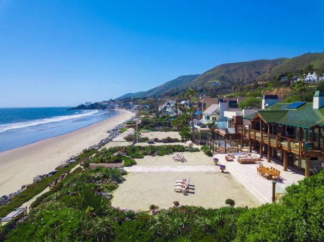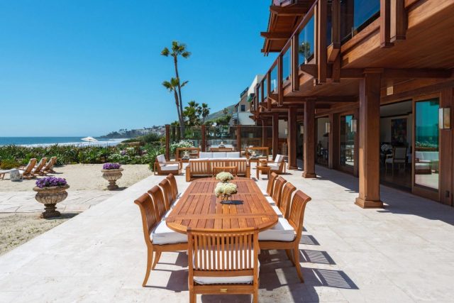 Brosnan built the property himself, a sprawling, estate with massive rooms, a Thai design that features many large wood beams and stunning views of the exclusive beach in Malibu.