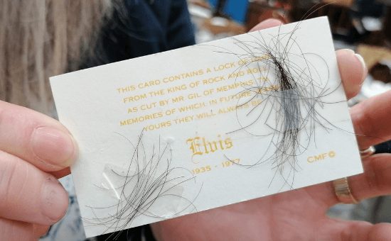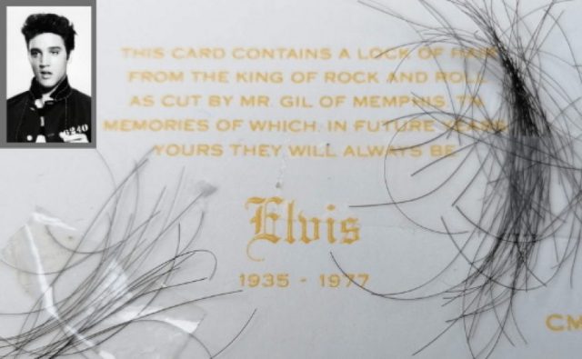 “Over the years Mr Gill collected a sizeable amount of hair. After Elvis passed away, he would give a few strands to fans taped to a card. When Mr Gill couldn’t work anymore, he began to sell it.”