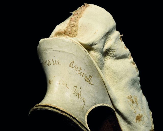 Marie took good care of her shoes, it would seem, and after her beheading in 1793 – the people were clearly fed up with her spoiled nature and selfish ways – a pair of her shoes were given to one of her maids. The maid’s family kept them, wisely, and recently put one of them up for auction.