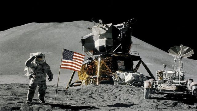 With its mission of collecting rock samples complete, there was only one way to sign off – leaving a five-starred flag behind so everyone would know who’d been there.