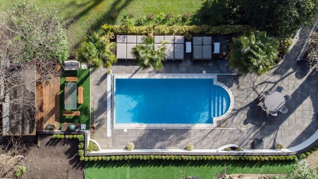 Outside is a heated pool with its very own bar. The garden and grounds include long-established trees such as walnut, lime and fig according to Knight Frank.
