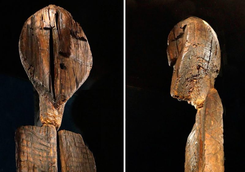 The Shigir Idol is all the more remarkable for the state in which it was found among the Ural Mountains, Siberia. Miners searching for gold in the Shigir peat bog – hence the sculpture’s name – dragged the fragments out of the muck over 100 years ago. It lay 13 ft under the surface.