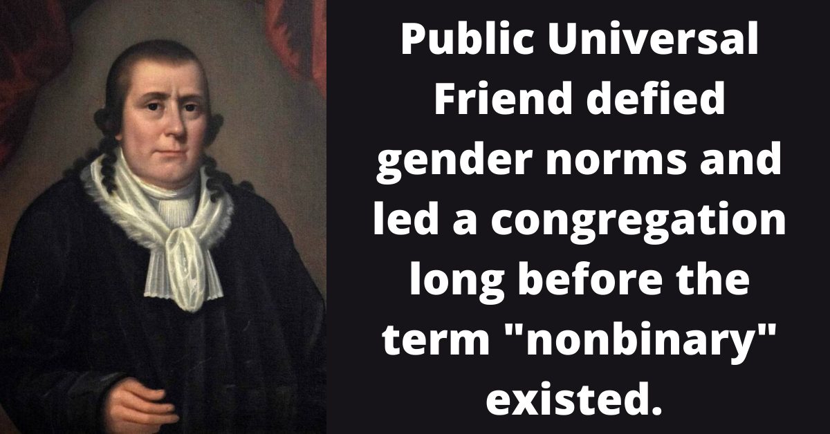 Public Universal Friend sounds like a virtual assistant, but they were actually what we would call “nonbinary” today, and they lived through the late 18th and early 19th centuries.