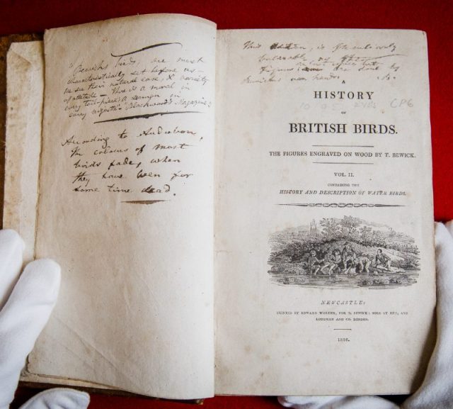 What makes this particular copy so special are Patrick Brontë’s annotations on the pages based on his personal observations. One entry relating to a golden eagle reads: “I saw, in Leeds, a stuffed specimen of this bird; it was considerably larger than a goose, as its neck was as thick as a man’s arm.”
