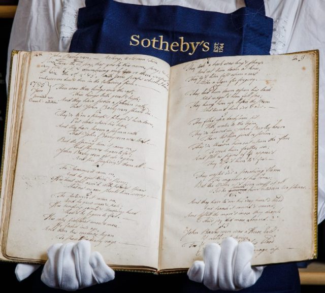 Interestingly, the First Commonplace Book of Robert Burns that is going on sale this year was originally sold at Sotheby’s in 1879. At that time, it was purchased for £10, later being sold to William Law in 1891.