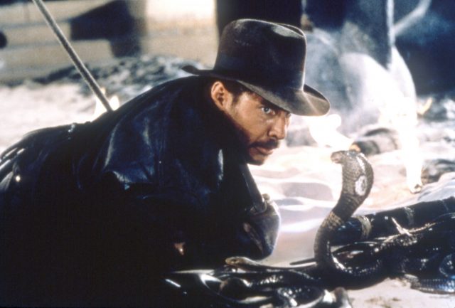 Harrison Ford, unlike Indy, isn’t afraid of snakes — which is just as well because the shot in the Well of Souls required 10,000 snakes.