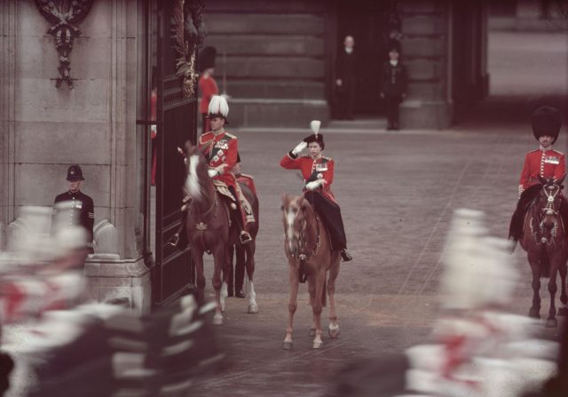 The Queen and her family have hopped onto horses many a time. Whether she plans to brave a few trots on the day isn’t known…though even at 95, Queen Elizabeth II is a keen rider. Then it’s up to the famous balcony in order to watch the RAF’s traditional flyby.