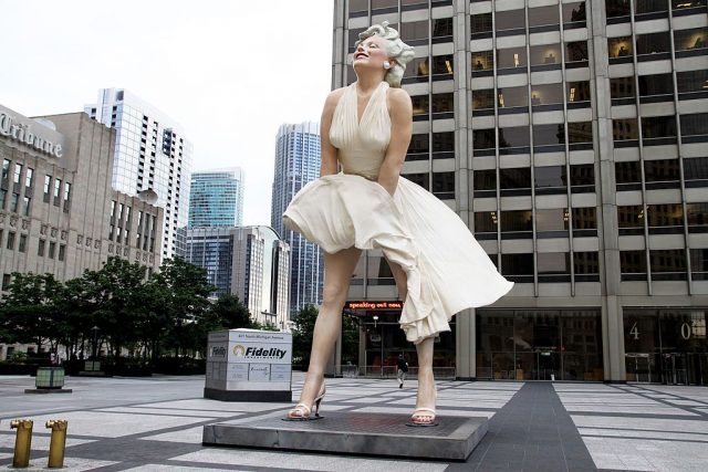 In 2011, sculptor John Seward Johnson II created a 26-foot tall statue of Marilyn Monroe. Crafted from aluminum and stainless steel, it portrays Monroe in her famous scene from the 1955 romantic comedy The Seven Year Itch, where she stands over a subway grate while her dress is lifted up by the wind of a passing train.