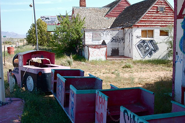 Realtor Nina Talbot founded the town in 1937 in an attempt to attract buyers to the desert. It grew into a year-round holiday attraction, with a post office, children’s train, and the popular Christmas Tree Inn.