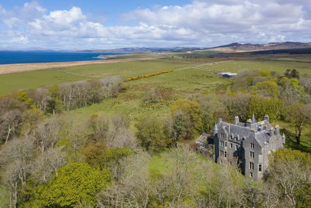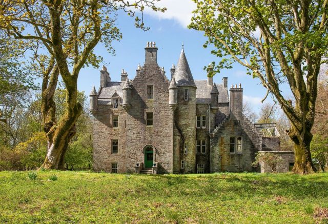 The historic Kilberry Castle on the west coast of Scotland can be yours for only £650,000 (around $900,000 USD). This 15th-century castle features five principal reception rooms, 10 principal bedrooms, four secondary bedrooms, and four bathrooms. The sale also includes a small cottage that features an additional three bedrooms.