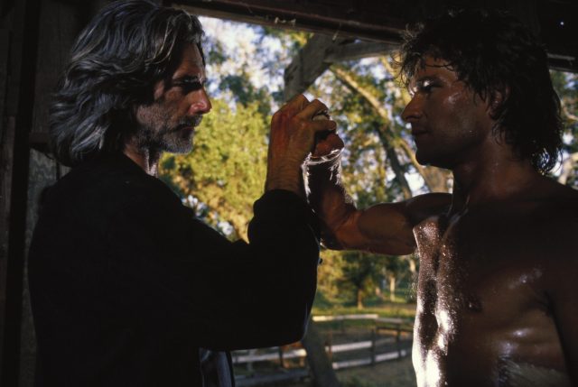 Speaking of going in a different creative direction, one of Elliott’s best-known roles is that of Wade Garrett in the fondly remembered Patrick Swayze vehicle Road House (1989).