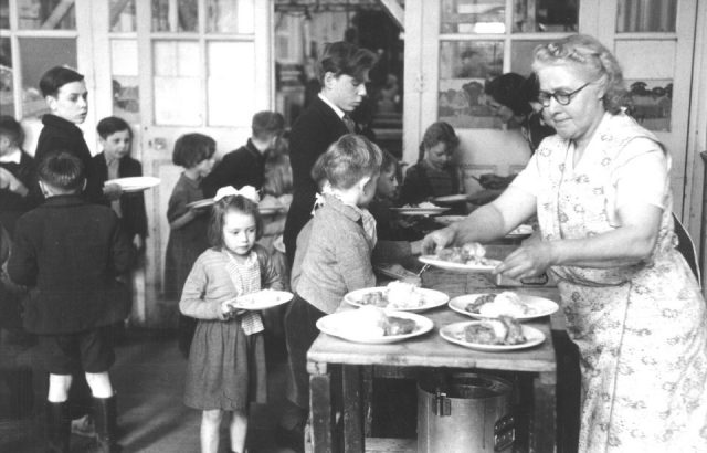 Packed lunches developed later in the decades. Early on, the choices were either to go home for lunch (if you lived close enough) or to have school dinners.