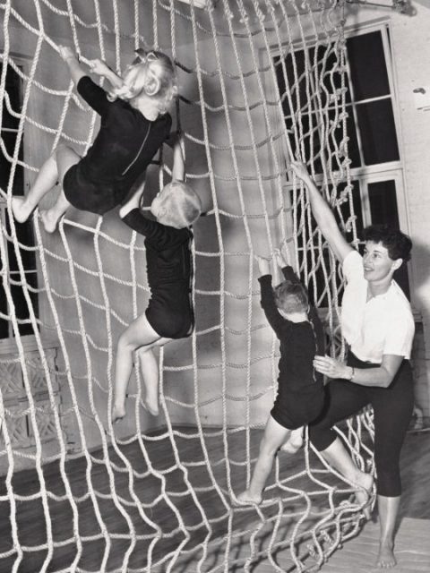 For physical education lessons in the ’50s and ’60s, the teachers would put on the radio and listen to a radio show like Music and Movement. The children would follow the instructions given over the radio and leap around to music.