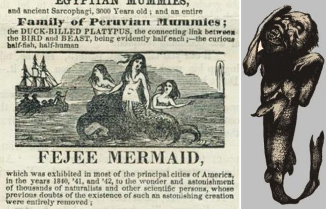 Barnum leased the creature for $12.50 per week. He got his assistant, Levi Lyman, to pose as “Dr. J. Griffin,” the man who had discovered this wonder in South America. In reality, the mermaid was the torso and head of a small monkey sewn onto the bottom half of a fish.