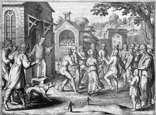 One account states that on Christmas Eve in 1021, 18 people began dancing outside the church in the German town of Kölbigk. Furious at their refusal to stop, the priest cursed them to dance for a whole year without respite, which they did, before falling down dead.