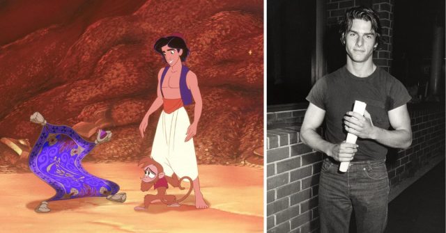 Although Aladdin’s pants in Disney’s Aladdin were based on MC Hammer’s signature style, the rest of his character was based on actor Tom Cruise. Originally, Aladdin was based on actor Michael J. Fox, but the creators thought audiences wouldn’t believe that Jasmine would fall for a guy based on Michael J. Fox (ouch). So Disney revamped Aladdin to be more like Tom Cruise.