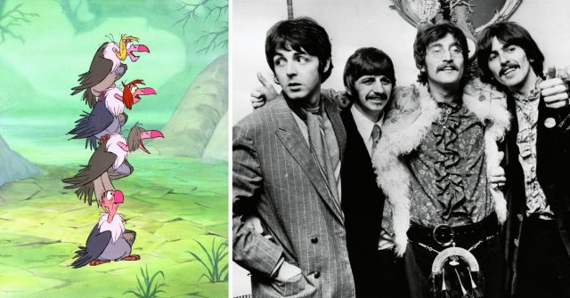 When Disney’s The Jungle Book came out in 1967, the Beatles were one of the most popular bands in the world. The four vultures in The Jungle Book sport funky hairdos similar to the Beatles but also sing “That’s What Friends Are For” — a song similar to The Beatles’ 1967 song “I Get By With A Little Help From My Friends.”
