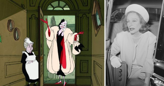 Cruella de Vil perfectly embodies actress Tallulah Bankhead, and once you see it, it’s hard to erase the resemblance from memory. Like Cruella de Vil, Tallulah Bankhead was very thin and constantly chain-smoking. Tallulah Bankhead had a deep raspy voice, and would recklessly drive around in her loud car, just as Cruella does in the movie.