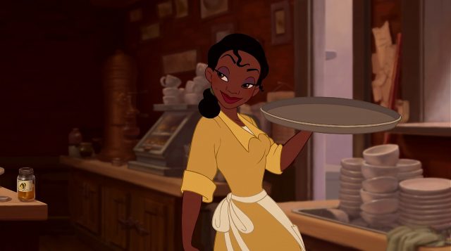 Princess Tiana from The Princess and the Frog is probably the only left-handed Disney princess. The character of Tiana was largely based on her voice actress, Anika Noni Rose, who like Tiana is left-handed. Anika Noni Rose’s dimples also inspired animators to give Tiana dimples.