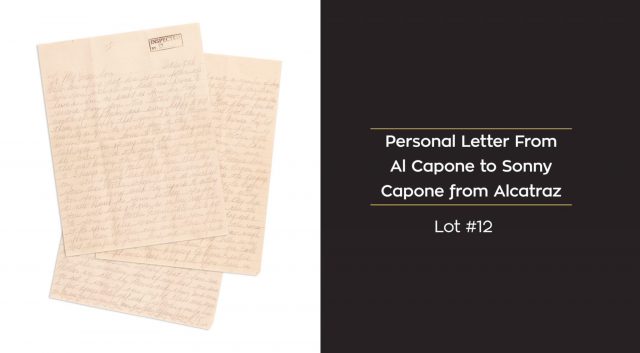 The item garnering the most attention is a letter Capone wrote to his son while he was imprisoned in Alcatraz. It offers a glimpse into how he interacted with his family, and is estimated to fetch between $25,000 and $50,000.