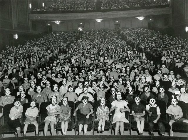 The official theatre-based Mickey Mouse Club first began in January 1930. By 1932, the Mickey Mouse Club had over one million members in America. We have got to assume that this ultra-creepy photo is from a meeting, and these kids are just excited to enjoy the magic of Disney. Although this is surely an innocent photo, these old Mickey Mouse masks, unfortunately, live in our brains rent-free in the worst way.