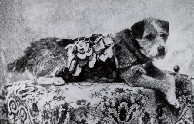 On one occasion, he was traveling on a wagon full of mail, and a pouch fell off. Although the humans didn’t notice, Owney jumped down and stood guard over it. When the wagon returned to the post office, the clerks found that both a mail pouch and Owney were missing. Retracing the route, they found the pouch with the pooch guarding it. This was deemed to be service above and beyond the call of duty.