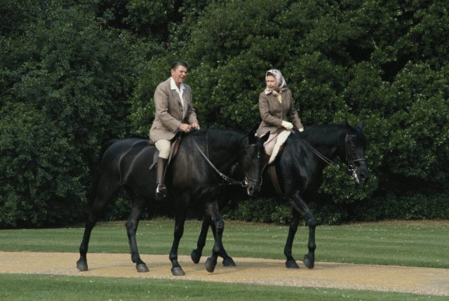 President Ronald Regan and his wife Nancy became the first American president and First Lady to stay overnight at the Windsor Castle during an official state visit in June of 1982. Writing in his memoir, Reagan recalled that the 1982 trip was a “fairytale” visit, and one of the most “fun” moments of his presidency. This 1982 trip was the first of three visits the Reagans made to see the Queen in the U.K., and she also visited their ranch near Santa Barbara in 1983. It was clear that Queen Elizabeth II took a liking to Reagan, which surely made their work a little easier.