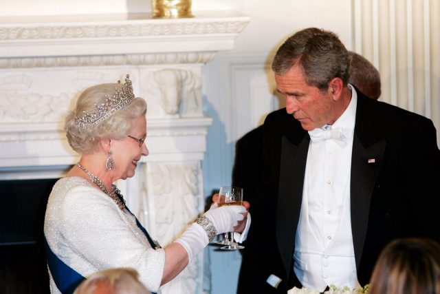 Technically, the first time US President George W. Bush met Queen Elizabeth was over lunch at Buckingham Palace while he was on a six-day European tour in 2001. However, in 2003 President George Bush became the first US president to make an official state visit to the United Kingdom. Around 100,000 people took to the streets in the UK during Bush’s visit to protest the Iraq War. These protests reportedly cost the United Kingdom millions spent on security during Bush’s three-day visit. In 2007, President Bush hosted the queen in America.