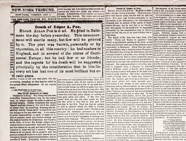 Griswold appears to have had a grudge. How come? It reportedly stems from Poe’s time as a critic. Revenge is a dish best served cold. In Poe’s case literally, as he was in the ground at the time.