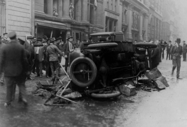 Eighty years before the September 11, 2001, terrorist attacks, New York was victim to another heinous attack. During the lunchtime rush on September 16, 1920, a horse-drawn wagon was parked in front of the U.S. Assay Office, across from the J.P. Morgan building, on the busiest corner of New York City’s financial district. Moments later, the cart exploded in a timer-set detonation, sending shrapnel and debris through the air.