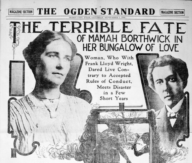 In 1903, Wright had been commissioned by electrical engineer Edwin Cheney to build himself and his family a house in Oak Park, Illinois. While working on the Oak Park house, Wright fell in love with Cheney’s wife, Martha “Mamah” Borthwick. The two began having an affair and even traveled to Europe together-alone- in 1909 without their spouses.