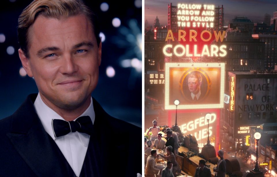 The 2013 movie makes reference to this connection. In the movie, Nick Carraway meets Jordan Baker for dinner on the terrace of a building in Times Square. In the background of this scene, an advertisement for Arrow Collars is very clearly in the background.