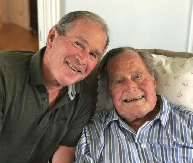 Vascular Parkinson’s disease resulted in his death in 2018. He was 94 and, at that time, the longest-living president. This family photo with son George dates from June, several months before his passing.