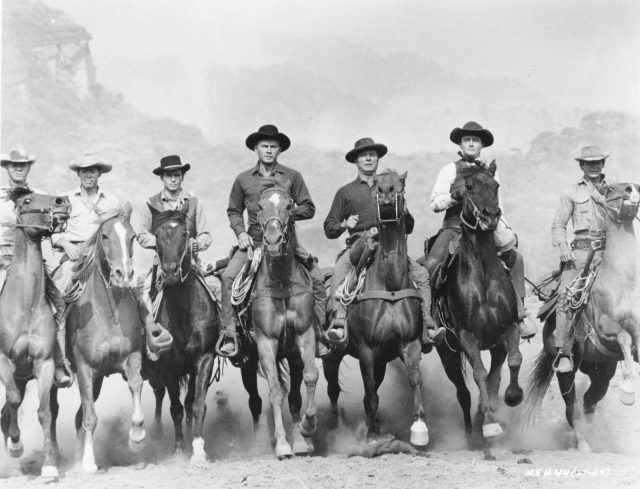 We took part of the title for this article, so couldn’t not mention this legendary 1960 lineup. Star Yul Brynner wasn’t particularly tied to the Western, though in later life he impressed audiences with his performance as a robot cowboy in the original Westworld (1973).