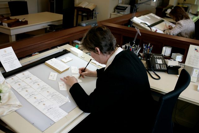 Located in the East Wing, this office is where all the invitations, place cards, and greetings for formal events are created.