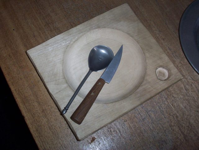 Before china plates, there were trenchers. These were rectangular dishes made of thick wood, slightly hollow in the middle so your food wouldn’t leak over the edge.