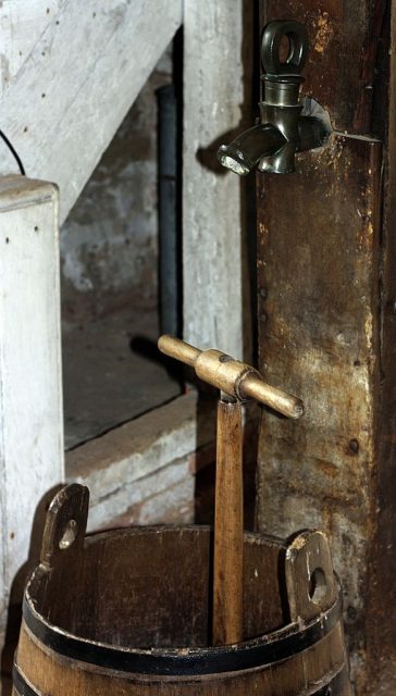 With warming pans and candles everywhere, the chances of an accidental fire would be high. Without a fire department or handy extinguishers, every house kept a fire bucket. These were often made of heavy leather.