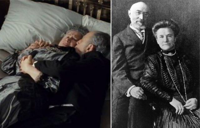 In James Cameron’s Titanic, one of the most tragic scenes depicts an elderly couple in bed while water rushes underneath them. This couple is based on the real-life husband and wife named Ida and Isidor Straus.