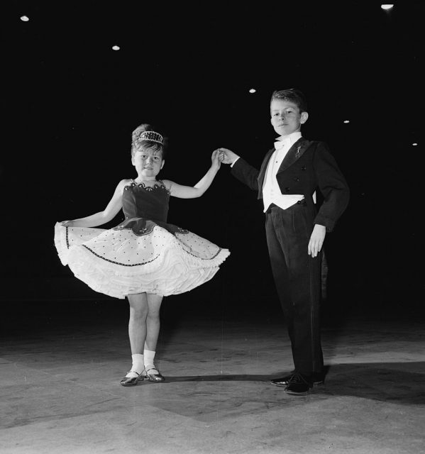 Little Claire Worwell and her dancing partner take part in the Empire Pool Youth Dance Festival. (Photo Credit: R. McPhedran/Express/Getty Images)