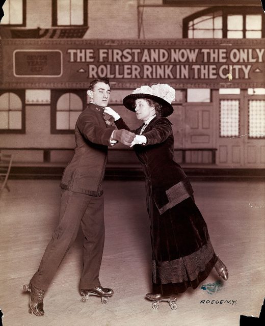 Couple skating in a New York City roller rink, circa 1910. (Photo Credit: Bettmann / Contributor)