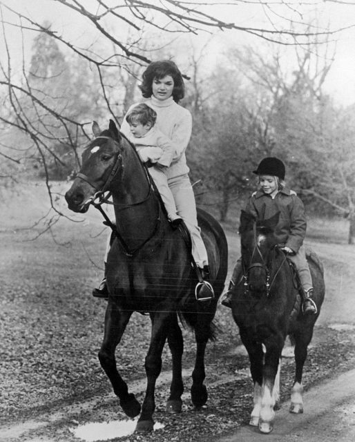 Jackie Kennedy ensures her son John doesn’t get left out while she takes her eldest daughter, Caroline, out riding.