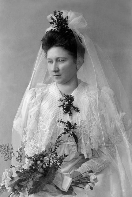 Bridal fashion around 1905, bride in wedding dress with tulle veil – (Photo Credit: ullstein bild/ullstein bild via Getty Images)