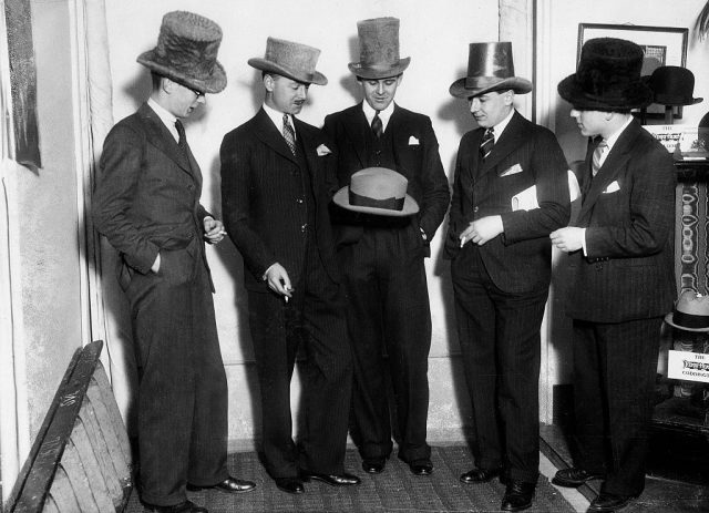 Men’s fashion Men in pinstripe suits and hats in different designs (Photo Credit: ullstein bild/ullstein bild via Getty Images)