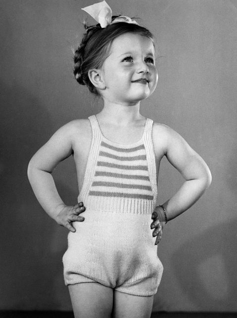 Kids look great whatever you dress them in, as demonstrated by a young girl in 1951 rocking a knitted swimsuit.