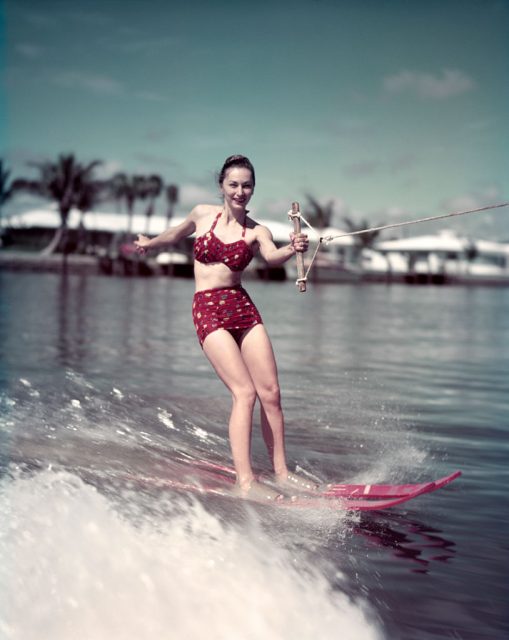 Fun and style are combined with this woman waterskiing in Florida in the 1950s.