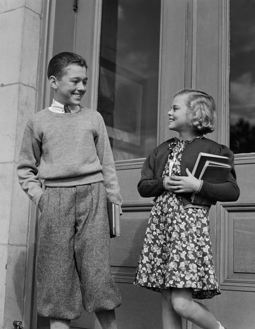 1940s SMILING BOY & GIRL HOLDING SCHOOL BOOKS BY DOORS (Photo Credit: H. Armstrong Roberts/ClassicStock/Getty Images)