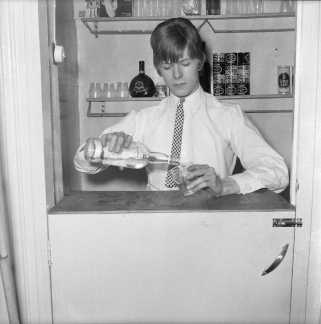 David Bowie showing that style is a way of life as he poses in his own home in the 1960s.