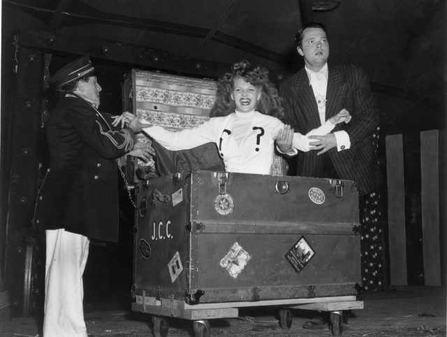 Welles’ super glamorous assistant (and real-life partner) Rita Hayworth was unavailable. So Carson got picked to get in the box and have Citizen Kane himself put a saw through his middle!